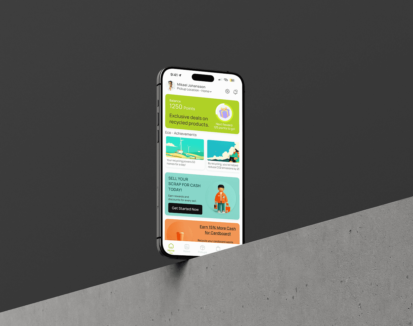 Turned scrap collection into a one-tap, stress-free task that saves 40% of users’ time and boosts their earnings by 30%.